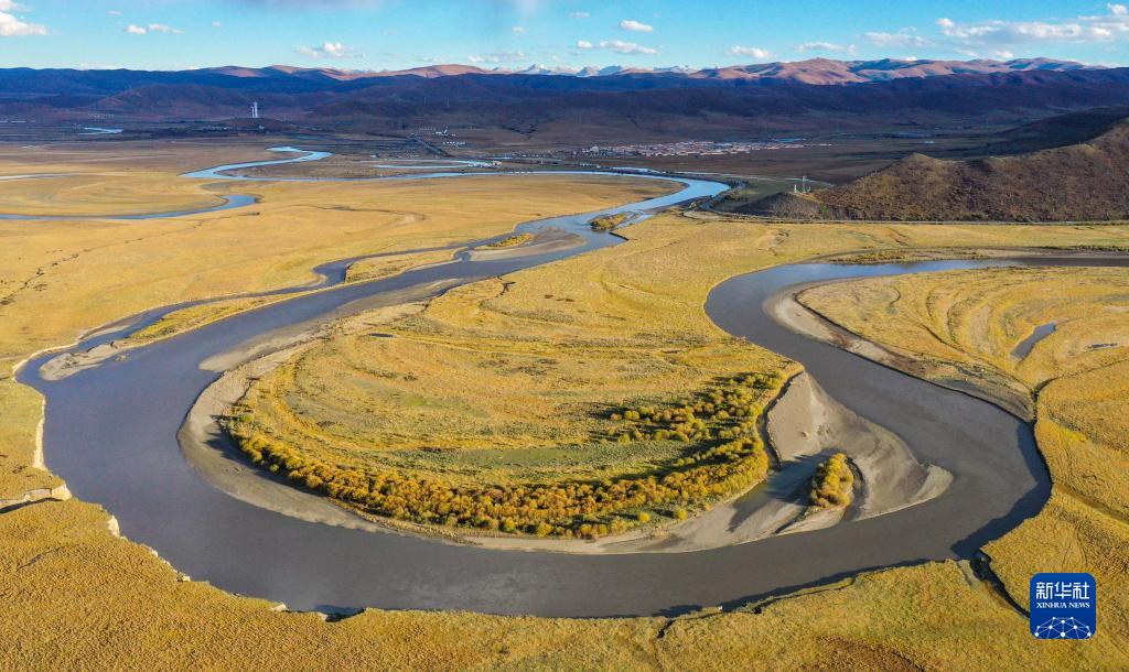 這是2022年10月19日在四川省阿壩藏族羌族自治州若爾蓋縣拍攝的熱曲河(無人機(jī)照片)。新華社記者 王曦 攝