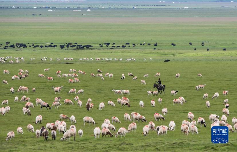 牛羊徜徉在四川若爾蓋濕地國家級自然保護(hù)區(qū)里(2022年7月25日攝)。新華社記者 江宏景 攝