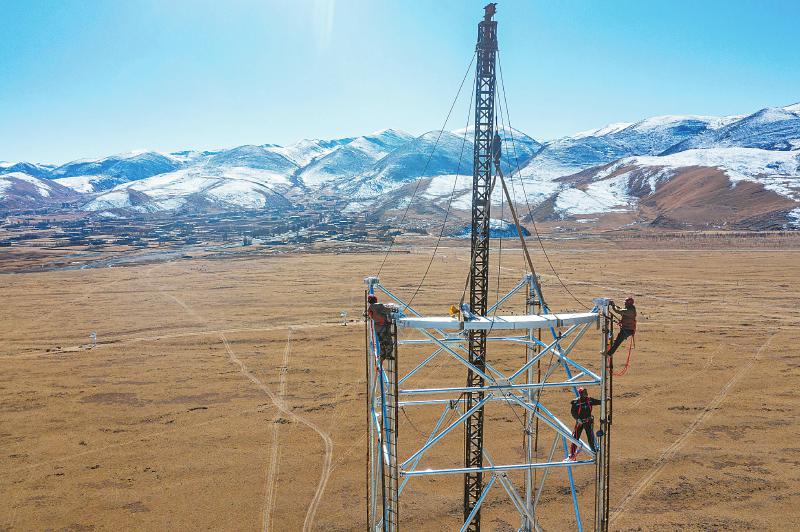 2022年10月23日 技術(shù)人員在百米高的子午工程二期定標(biāo)塔上調(diào)試天線。
