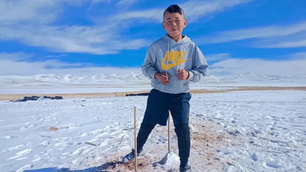 今年六年級(jí)的多果,是玉樹(shù)州曲麻萊縣第二民族完全小學(xué)的學(xué)生,微信名稱(chēng)叫“愛(ài)踢球的男孩”,性格靦腆害羞,說(shuō)起足球,滔滔不絕,黝黑的臉蛋上泛著紅光,12歲的他個(gè)頭不高,和隊(duì)友站在一起略顯瘦削,但一到場(chǎng)上他就成了機(jī)敏的精靈。還記得第一次踢足球時(shí)的場(chǎng)景,那是一個(gè)陽(yáng)光明媚的午后,雪山下的草地上,五六個(gè)小伙伴一起,一踢就是一下午。