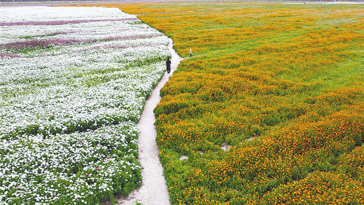 圖為青海省海西蒙古族藏族自治州德令哈市一望無際的原野花海 圖片來源:青海日?qǐng)?bào) 攝影:蘇烽