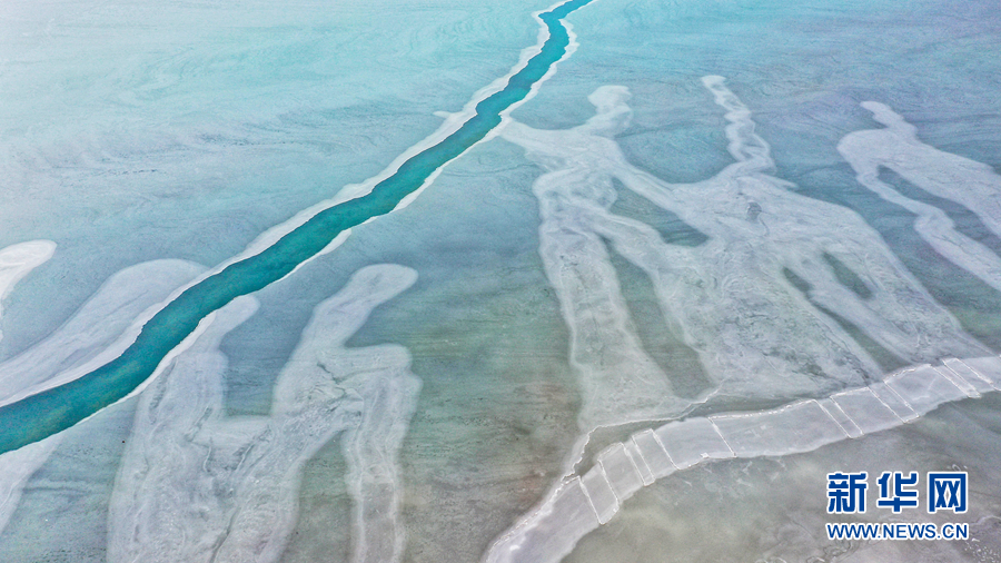 封凍的湖面如同破碎的“玉帶”,形成獨(dú)特的景觀。新華網(wǎng) 宋忠勇 攝