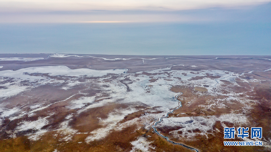 圖為12月10日航拍的冬日青海湖。新華網(wǎng) 宋忠勇 攝