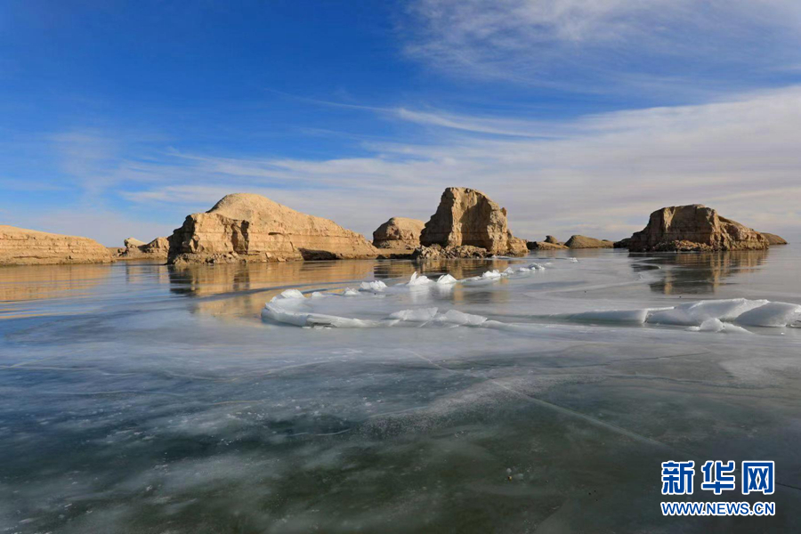 封凍的湖面如同破碎的“玉帶”,形成獨(dú)特的景觀。新華網(wǎng)發(fā)(宋忠勇 攝)