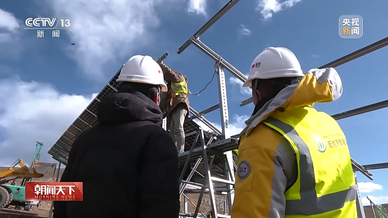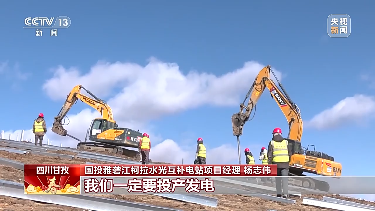 總臺央視記者 古峻嶺:在海拔4600米的柯拉水電光伏互補電站,1000多名建設者正在加緊施工,他們要在春節(jié)期間把53萬根光伏基礎樁全部施工完成。