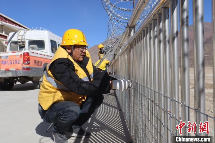 圖為馬智文加固車站松動(dòng)的網(wǎng)圍欄密布網(wǎng)。馬生明 攝