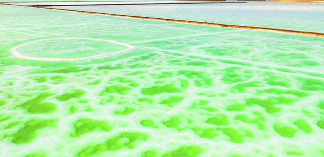 8月15日,航拍地處青海省海西州茫崖市的翡翠湖。翡翠湖是一個人工鹽湖,田字狀的湖水呈現(xiàn)出青翠的色彩。[詳細(xì)] -
