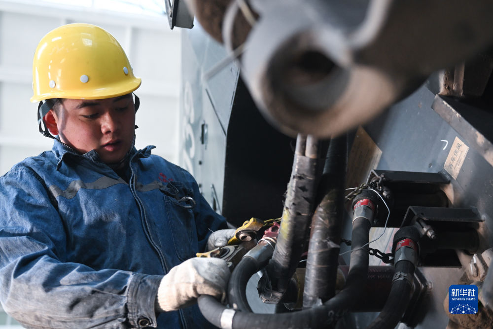 2月4日,在格爾木機(jī)務(wù)段檢修車間,馬國仁在檢修機(jī)車。新華社記者 張龍 攝