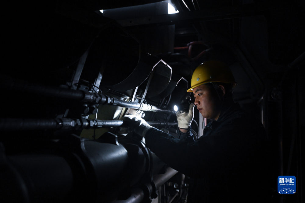 2月4日,在格爾木機(jī)務(wù)段檢修車間,馬國仁在巡檢機(jī)車。新華社記者 張龍 攝