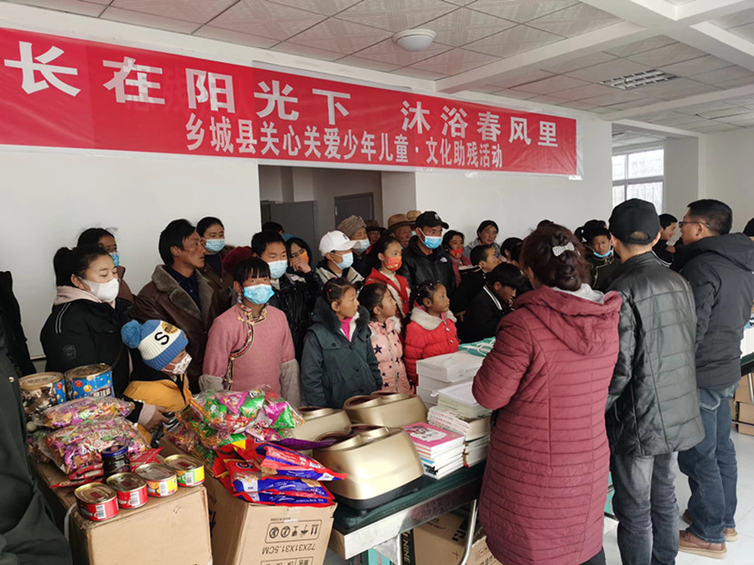 鄉(xiāng)城縣開展關(guān)心關(guān)愛少年兒童—文化助殘活動(dòng)。