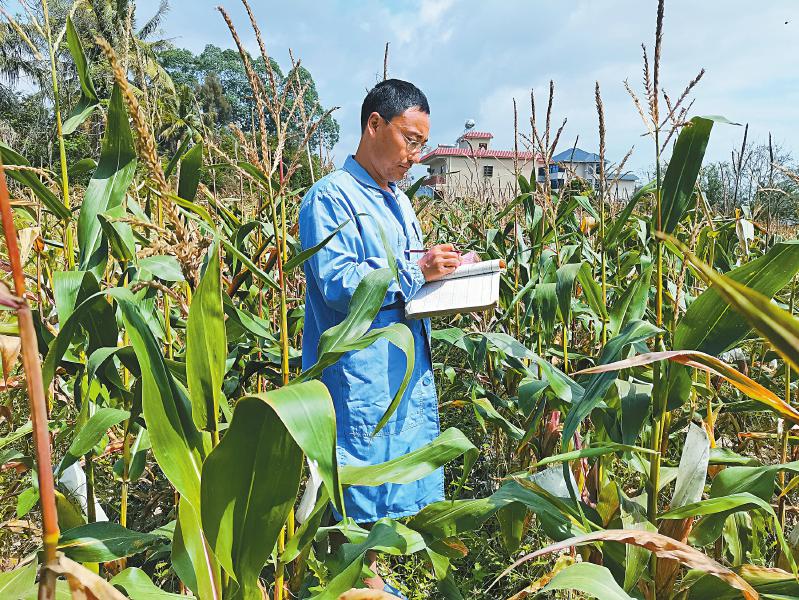 海南省陵水縣椰林鎮(zhèn)城東村,楊榮志在玉米南繁基地給玉米記錄編號(hào)。 楊華勇 供圖