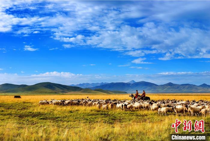 圖為瑪曲縣阿萬(wàn)倉(cāng)鎮(zhèn)草原牧民在放牧。鐘建龍 攝