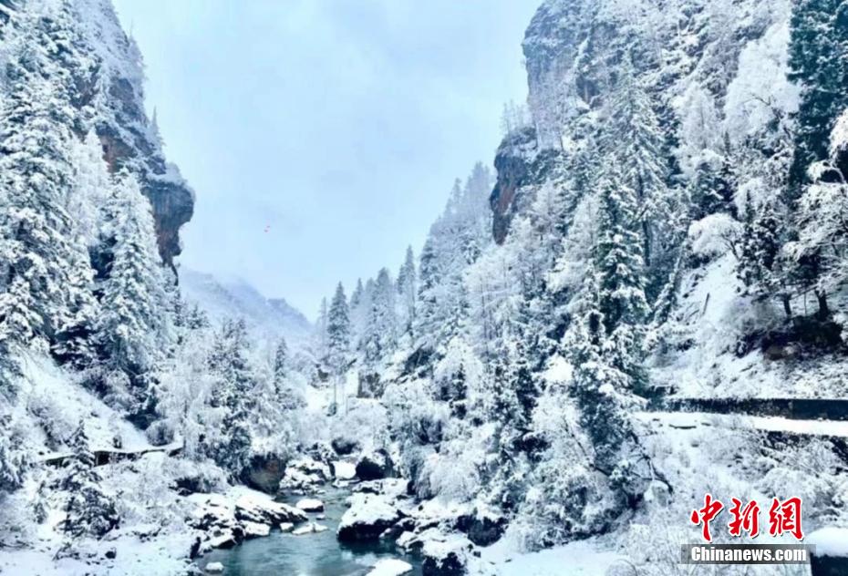 3月底,甘肅甘南藏族自治州卓尼縣大峪溝被一場春雪覆蓋,紛紛揚(yáng)揚(yáng)的雪花勾勒出一幅意境深遠(yuǎn)的水墨丹青畫。大峪溝與九寨溝齊名,有“南有九寨溝、北有大峪溝”之美譽(yù)。圖為春雪增春色,大峪溝玉樹瓊枝的場景。