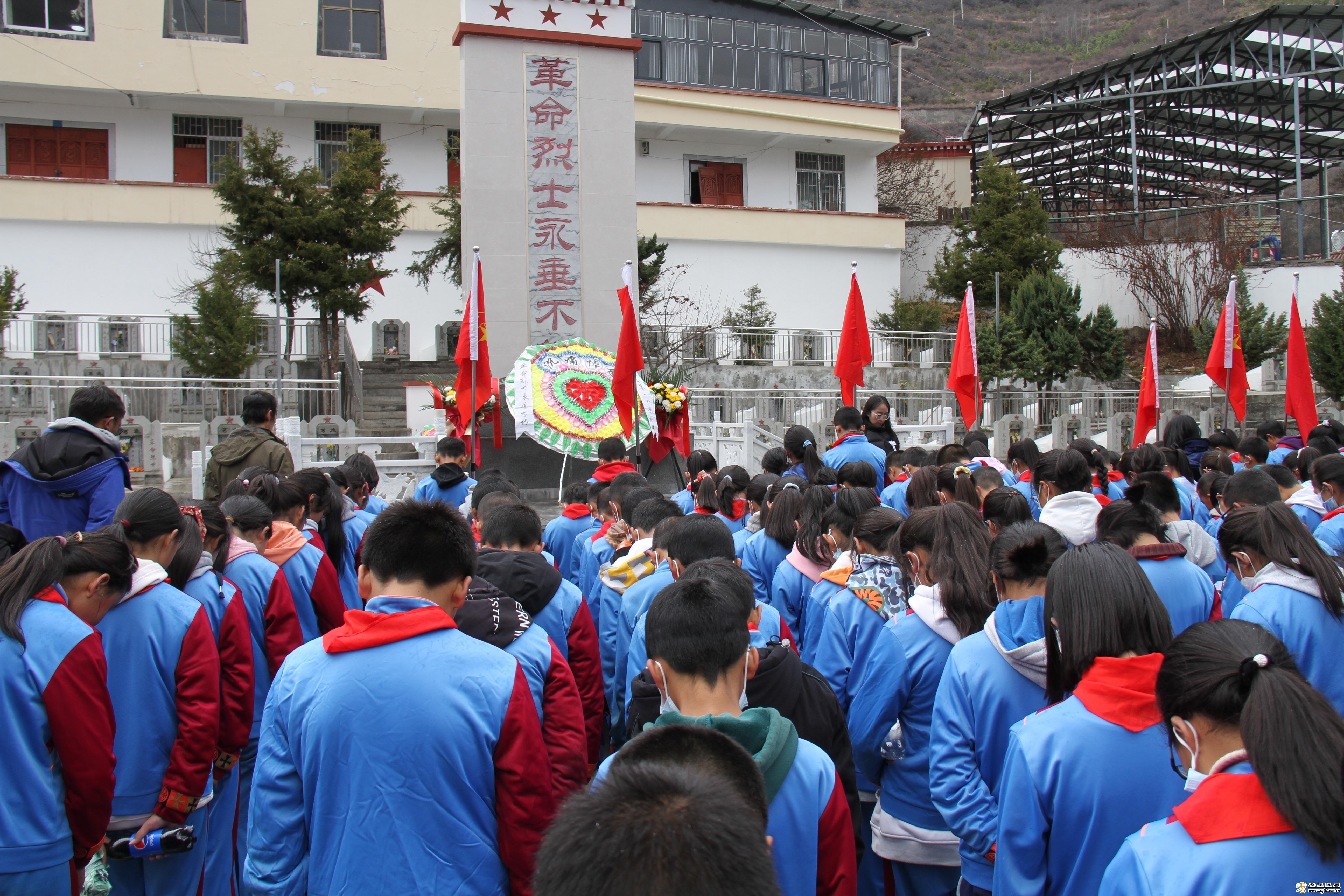 清明節(jié)當(dāng)天,德欽縣烈士陵園里,德欽縣第一小學(xué)的少先隊(duì)員們?cè)诶蠋煹膸ьI(lǐng)下,開(kāi)展了“尋訪紅色蹤跡、瞻仰革命遺跡社會(huì)實(shí)踐活動(dòng)----紅色精神代代傳”清明節(jié)祭奠英烈主題活動(dòng)。少先隊(duì)員們向先烈敬獻(xiàn)花圈,全體隊(duì)員向革命烈士默哀,學(xué)生代表上臺(tái)進(jìn)行了熱情洋溢的獻(xiàn)詞,活動(dòng)號(hào)召所有青少年學(xué)生時(shí)刻銘記烈士們?yōu)榻夥艊?guó)家和民族而不惜犧牲生命的大無(wú)畏的英勇事跡,向烈士們學(xué)習(xí)頑強(qiáng)拼搏的精神。