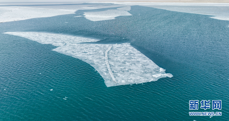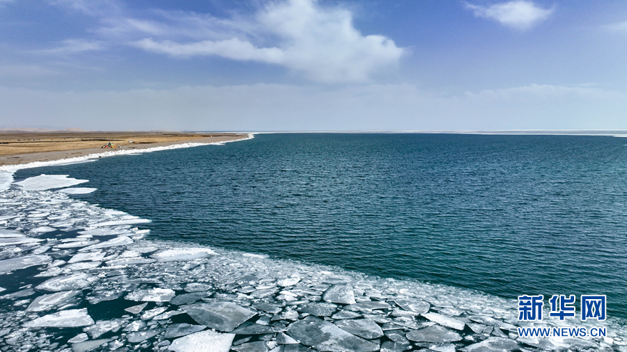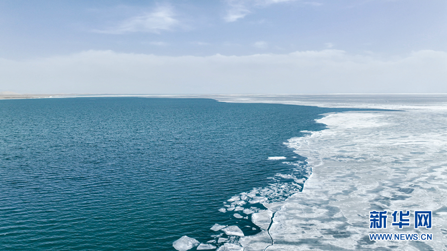 這是4月8日拍攝的青海湖開湖景觀(無(wú)人機(jī)照片)。新華網(wǎng) 宋忠勇 攝