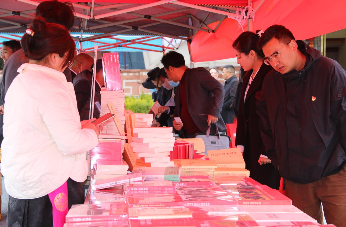 近日,記者在重點(diǎn)出版物展示展銷暨惠民書市活動(dòng)現(xiàn)場(chǎng)看到,迪慶州各大書店在香格里拉大劇院廣場(chǎng)中央擺放著大量習(xí)近平新時(shí)代中國(guó)特色社會(huì)主義思想讀物,吸引著市民前來(lái)翻閱購(gòu)買。