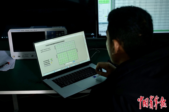 4月22日,四川稻城,一位年輕的科研人員正在查看水切倫科夫探測器陣列的實時運行狀態(tài)。中青報·中青網(wǎng)記者 李強 攝