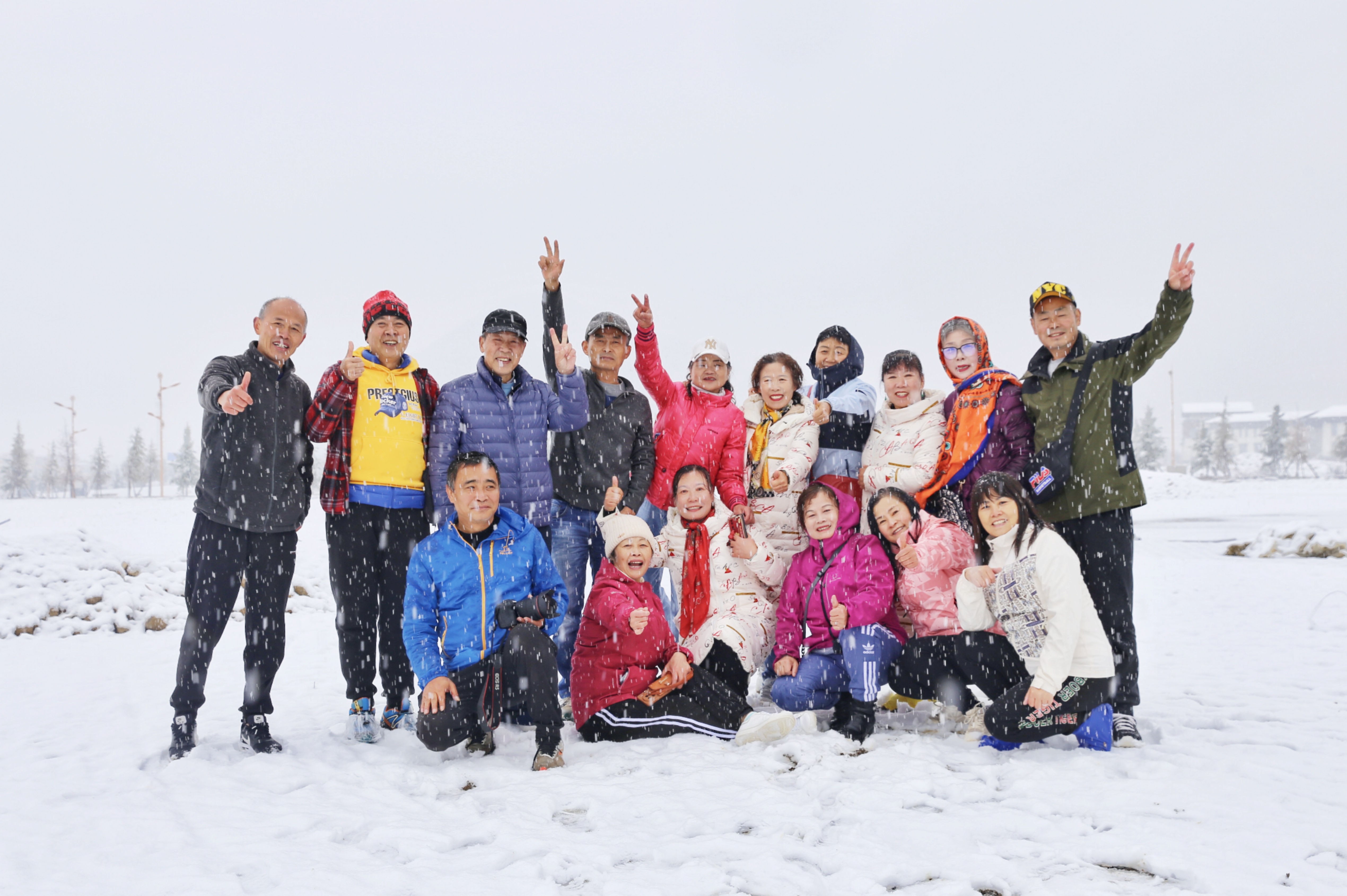 5月15日,香格里拉迎來一場(chǎng)夏雪,大雪紛飛的雪地中一群來自貴州的“嬢嬢團(tuán)”正興奮的玩雪、拍照,“太有意思了,五月也能玩到雪,很難得?!苯衲?5歲的劉嬢嬢告訴記者,她們?cè)谙愀窭锢瓮嫒奶炝耍裉鞙?zhǔn)備返程,出城路上被雪景吸引便索性再留出半天時(shí)間看雪。雪地中的嬢嬢們精氣十足,捏雪球、劈腿、下腰、打滾……大家紛紛擺出自己最拿手的pose拍照記錄下這令人驚喜的美景。