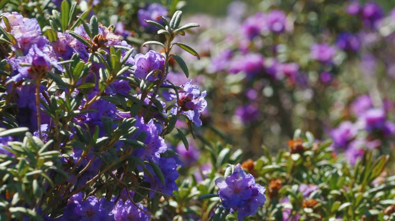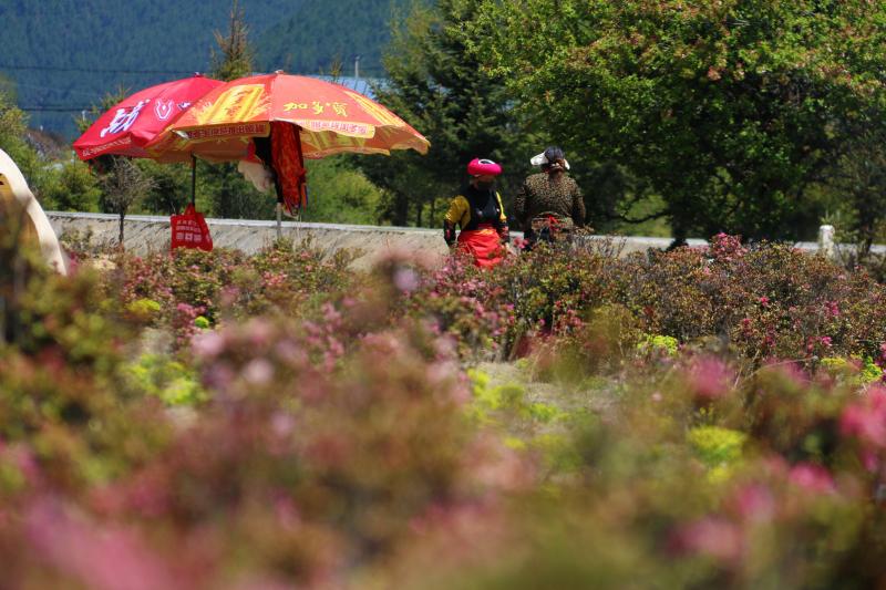 夏天,位于香格里拉市小中甸鎮(zhèn)的杜鵑花海競(jìng)相綻放,紫色、粉色的花朵開(kāi)成了海,與藍(lán)天白云遙相呼應(yīng),藏房點(diǎn)綴其間,美不勝收。每當(dāng)花季,當(dāng)?shù)氐睦习傩赵诨ê_厰[起特色美食,牦牛酸奶、苦蕎粑粑、酥油茶等美食供游客享用,坐在花海邊,品嘗當(dāng)?shù)靥厣朗常沁@個(gè)夏天小中甸花海獨(dú)有的浪漫。