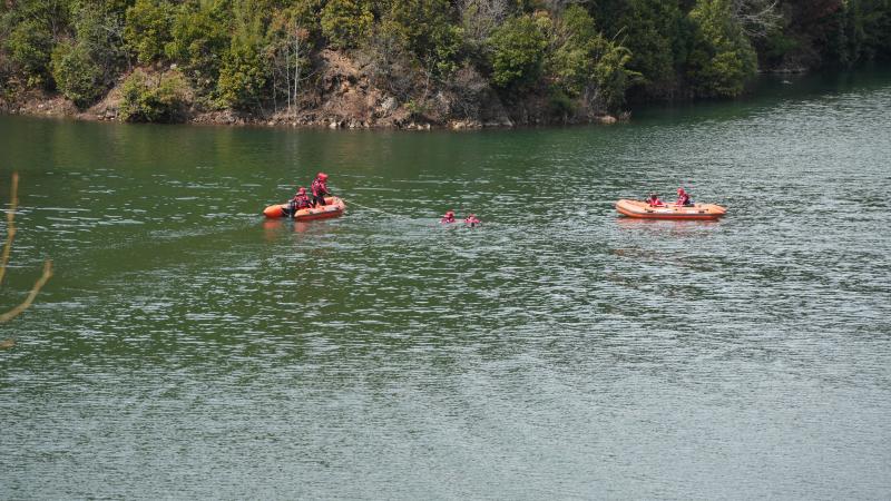 本次演練包括繩索救援、水域救援、高空救援橫渡三個專項(xiàng),演練現(xiàn)場緊張有序。