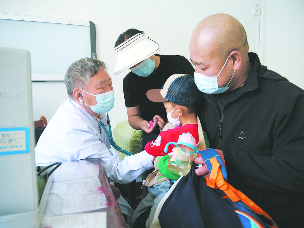 格日力耐心地為來自海西州德令哈市的小患者檢查身體。郭靚 攝