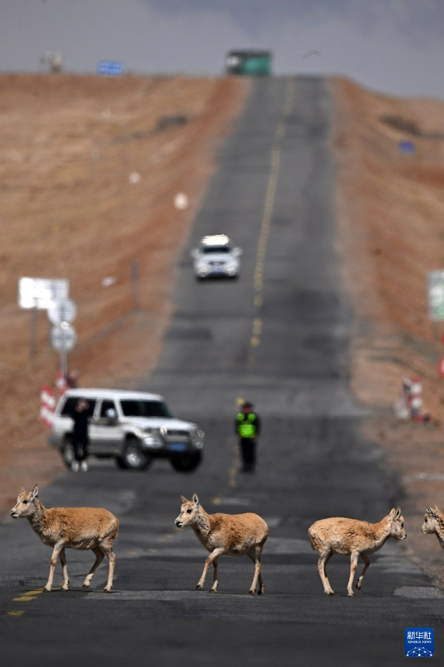 “為保證藏羚羊順利遷徙產(chǎn)仔,近期我們加強(qiáng)了對(duì)青藏公路沿線的巡護(hù),采取交通管制、禁止鳴笛、巡護(hù)救助等措施,讓藏羚羊安全通過?!比磭夜珗@管理局長江源園區(qū)可可西里管理處五道梁保護(hù)站工作人員江文多杰說。