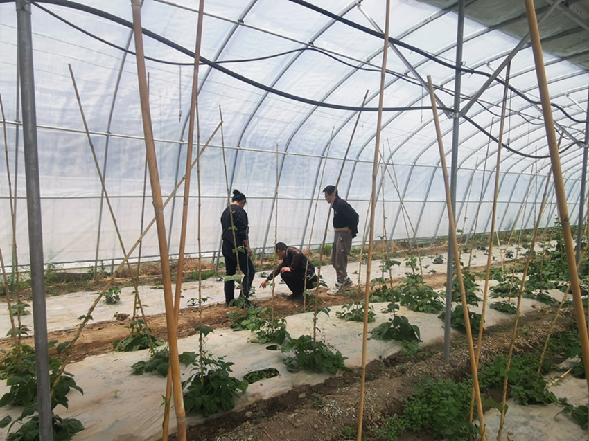 農技員在蔬菜大棚指導農戶進行科學管護。