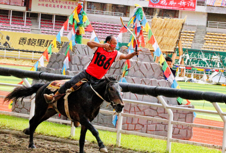 大理代表隊是此次參加跑馬拾哈達(dá)及跑馬射箭的唯一友鄰馬隊,該隊選手陸院章、余利剛在跑馬射箭項目中也獲得了第三、四名的好成績?!按罄砗偷蠎c都是云南省馬術(shù)比賽的主力,香格里拉的端午賽馬節(jié)我們每年都來參加,大理的三月街賽馬大會迪慶隊也不會缺席,多年來我們相互交流馬術(shù),結(jié)下了深厚的友誼,雖然此次我們沒有獲得最好的成績,但三年未能來香格里拉端午賽馬節(jié)的遺憾補上了,能夠再續(xù)雙方民族、區(qū)域之間割不斷的情誼,很值得!”大理代表隊領(lǐng)隊余利邦表示。