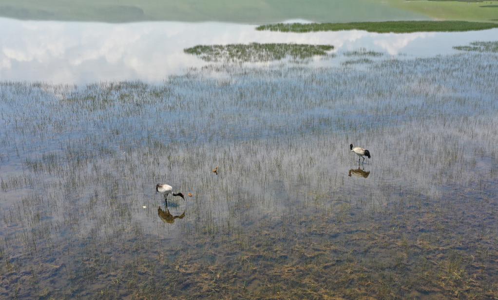 人鶴共生:濕地大省青海多措并舉引來黑頸鶴翔集