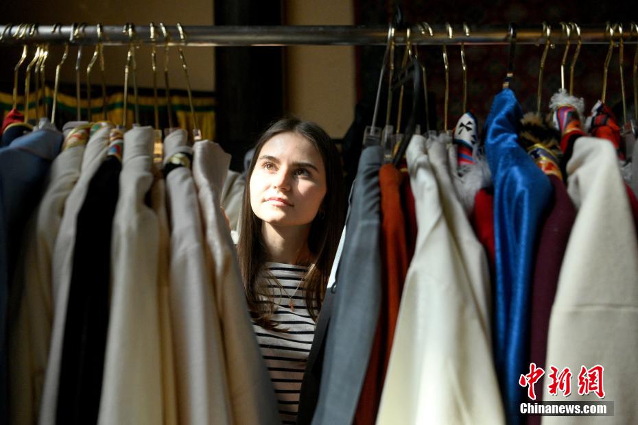 “Z世代”青年互相幫助試穿藏族服飾。李嘉嫻 攝