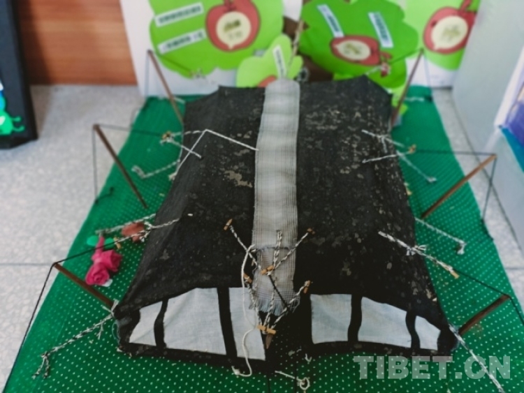 圖為學生和家長一起手工制作的帳篷模型