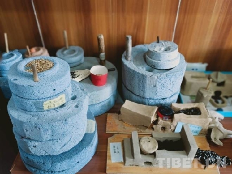 圖為學生和家長一起手工制作的糌粑磨盤