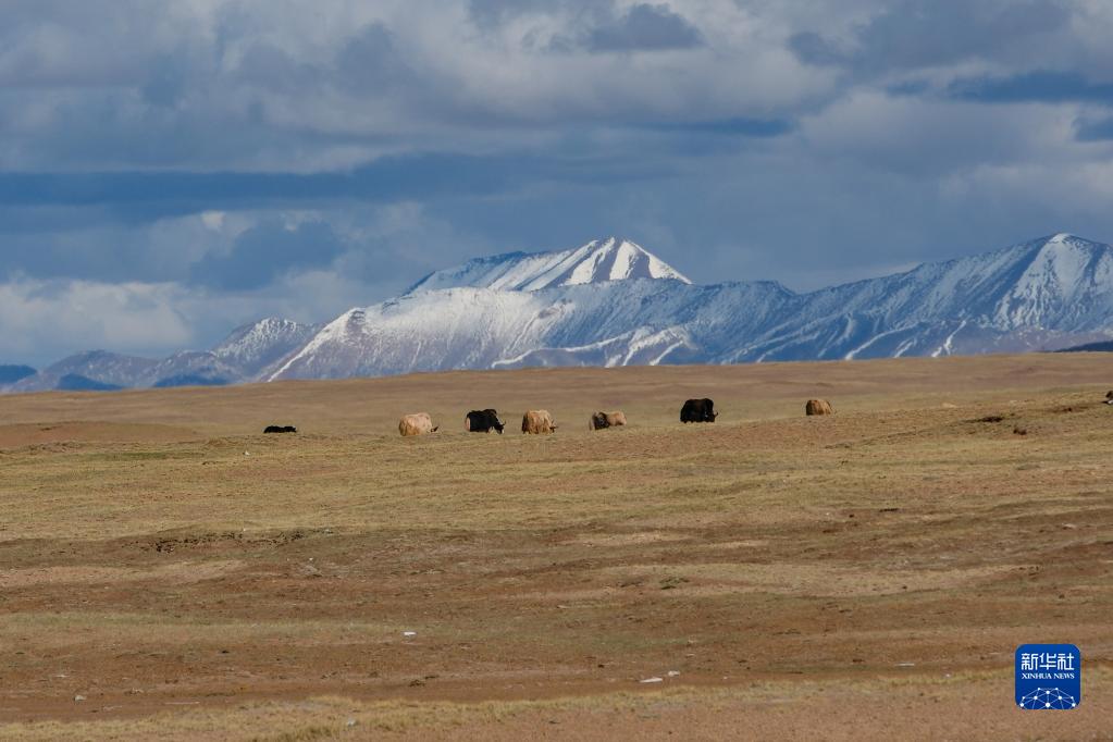 6月14日,在長江源地區(qū)的沱沱河附近,一群牦牛在覓食。新華社記者 張鋮 攝