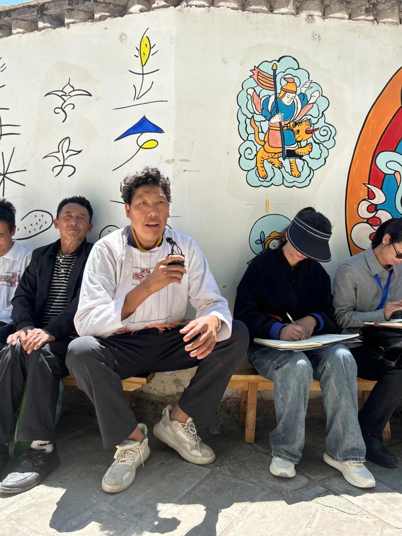 和樹昆在學(xué)習(xí)傳承東巴教各種祭祀儀式的同時,還精于東巴繪畫、面偶制作、東巴紙制造及東巴舞等傳統(tǒng)技藝。在尊重傳統(tǒng)文化的前提下,他注重文化產(chǎn)品創(chuàng)新,對東巴紙進行改良,將傳統(tǒng)東巴象形文字與書畫相結(jié)合,做成工藝品。閑暇之余,“化身”繪畫家,在吳樹灣村組活動室、戶外進行手工東巴畫創(chuàng)作“文化墻”,他的手繪畫惟妙惟肖且不失文化底蘊,“文化墻”成為宣傳東巴文化的“活招牌”。2019年,他參與一百五十卷東巴經(jīng)手抄本手抄工作(中國國家博物館收藏版)。2020年10月,他將自己制作的長5.8米、寬60厘米的“手繪納西東巴經(jīng)長卷”捐贈給迪慶州圖書館,進一步填補了民族文獻典籍征集、收藏的短板。
