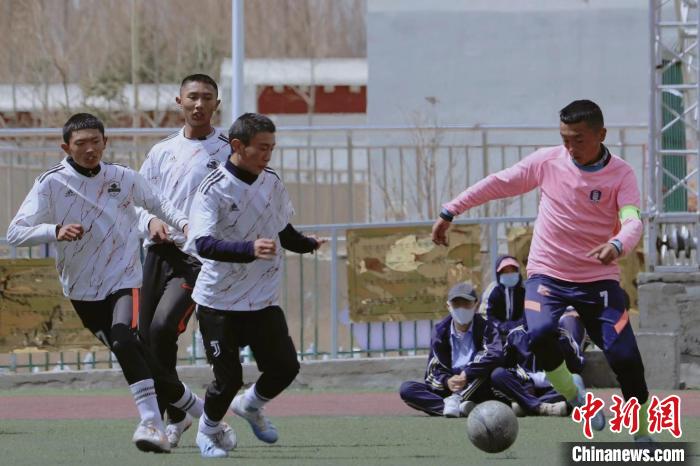 圖為玉樹(shù)州第二民族高級(jí)中學(xué)的學(xué)生在踢球。(資料圖片)中新社發(fā) 昂旺卓瑪攝