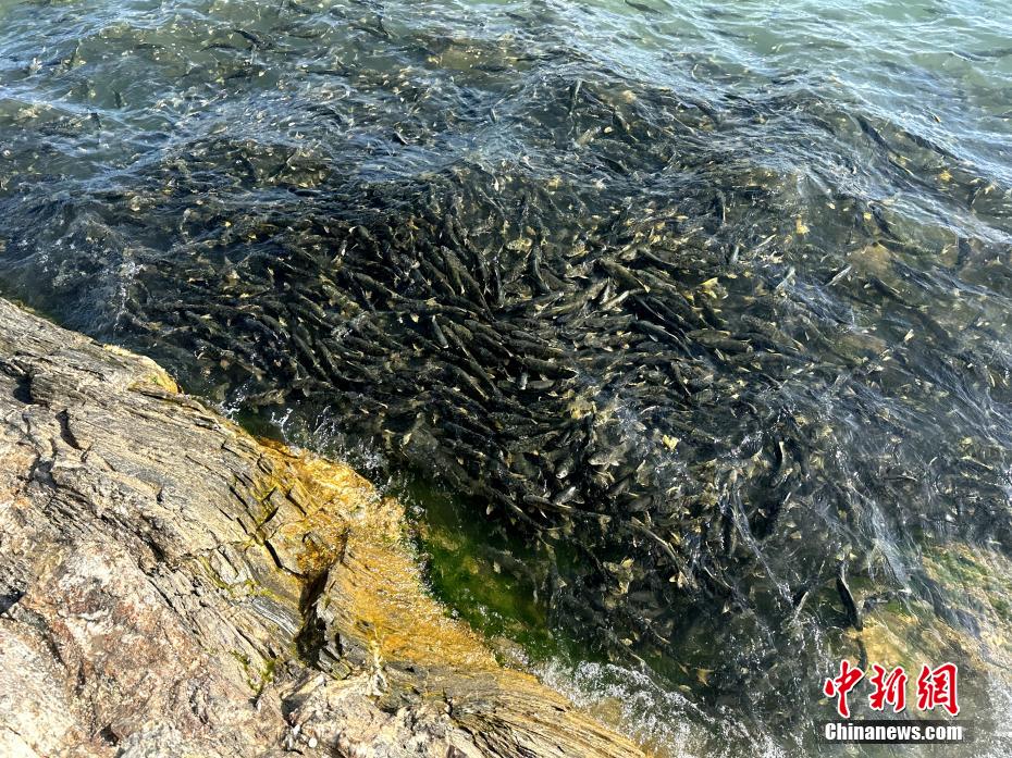 青海湖斷崖湟魚(yú)密集扎堆 游客如梭一覽奇景