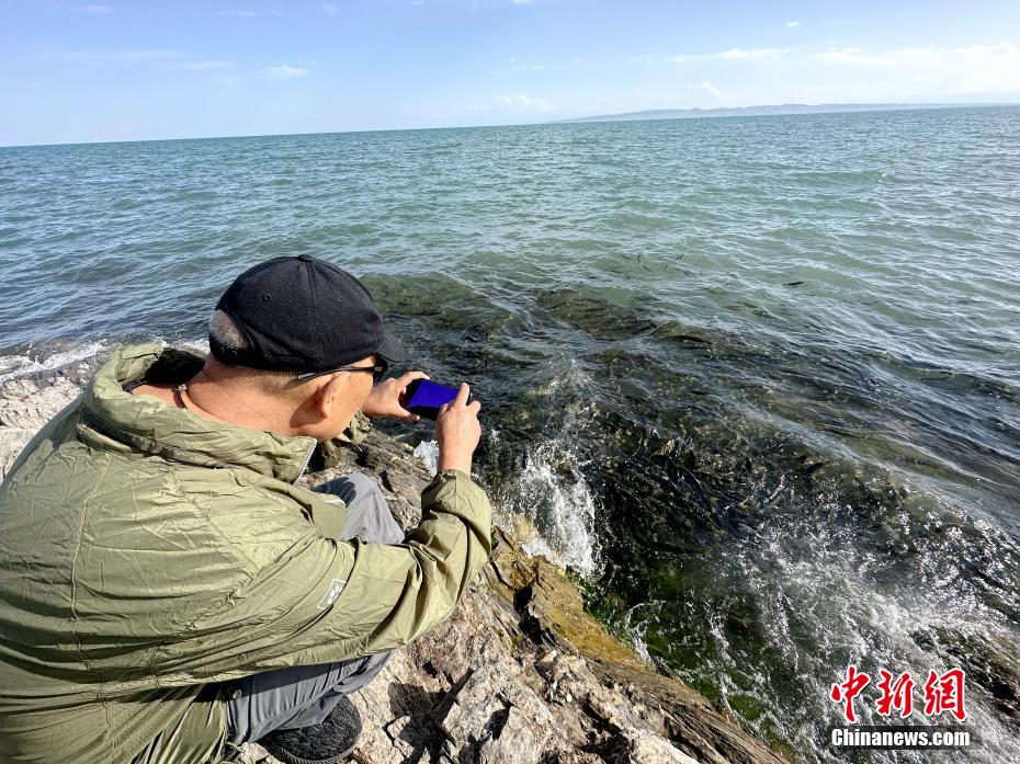 游客拍攝青海湖斷崖密集的湟魚(yú)。李雋 攝