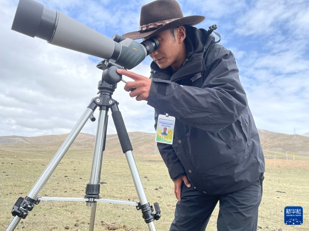 濕地生態(tài)管護(hù)員在青海隆寶國家級自然保護(hù)區(qū)觀察野生動物。新華社記者 李琳海 攝