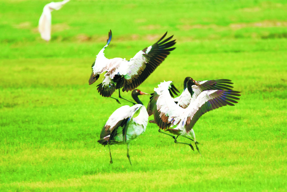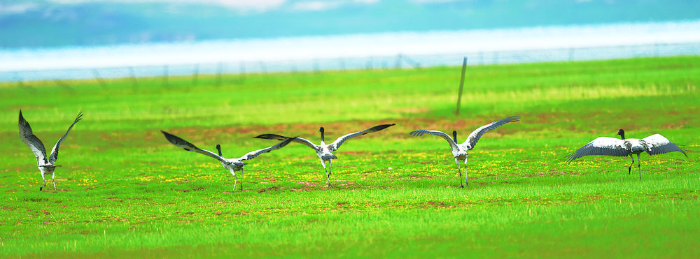 人鶴共生:濕地大省青海多措并舉引來(lái)黑頸鶴翔集