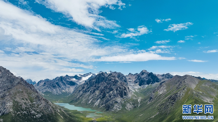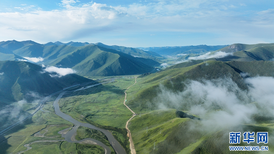 圖為在青海省果洛藏族自治州甘德縣境內(nèi)拍攝的夏日風(fēng)光(無人機(jī)照片)。新華網(wǎng) 宋忠勇 攝