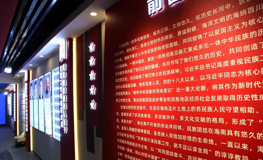 體驗館由“淵源流長、共同書寫海南悠久歷史”“命運(yùn)與共、共繪中華民族共同體底色”“團(tuán)結(jié)奮斗、共建中華民族共同體”“人杰地靈、共同孕育圣潔海南”“繼往開來,共圓偉大復(fù)興中國夢”五個篇章十八個單元組成,展陳布局完整、內(nèi)容新穎、特色鮮明,是展示海南悠久歷史的“隧道”、改革發(fā)展成果的“窗口”、參觀學(xué)習(xí)交流的“平臺”、各民族交往交流交融的“陣地”。