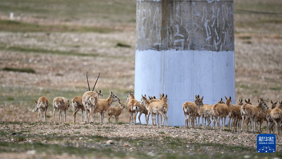 7月28日,一群藏羚羊在青藏鐵路沿線活動。新華社記者 張宏祥 攝
