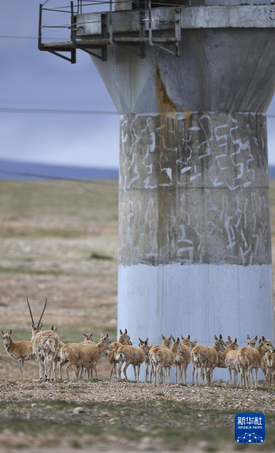 7月28日,一群藏羚羊準備通過青藏鐵路五北大橋。新華社記者 韓方方 攝