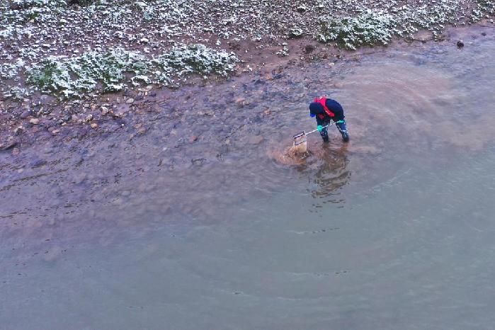 由水利部長江水利委員會長江科學(xué)院牽頭組織的2023年江源綜合科學(xué)考察正在長江源進(jìn)行,其中魚耳石是新增研究內(nèi)容。為了采集耳石,來自長江科學(xué)院水環(huán)境所的科考隊(duì)員劉晗頂著大風(fēng)和雨雪,穿著下水褲和隊(duì)友在長江源區(qū)多條河流中采集魚類樣本,經(jīng)常在冰冷的河水中守候十多分鐘。