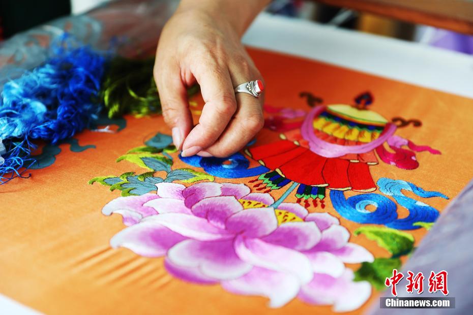 8月1日,記者拍攝青海省海南藏族自治州藏繡。藏繡源于公元9世紀(jì),與唐卡和堆繡并稱為藏傳佛教三大藝術(shù),是中國少數(shù)民族傳統(tǒng)文化中最具特色的刺繡派系之一。藏繡根據(jù)其藝術(shù)表現(xiàn)形式和手法、地區(qū)差異等可分為多種派系,其中“海南藏繡”主要分布在青海省海南藏族自治州貴南地區(qū)和共和盆地為主的農(nóng)業(yè)區(qū)。