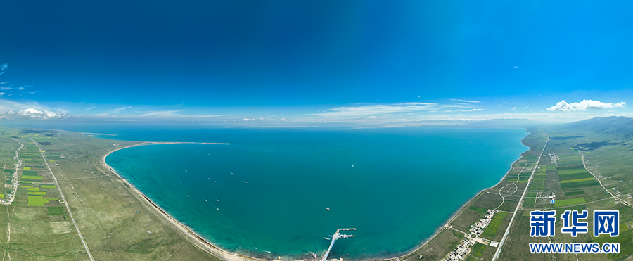 這是8月2日拍攝的青海湖。(無(wú)人機(jī)全景照片)新華網(wǎng) 郭勇良 攝