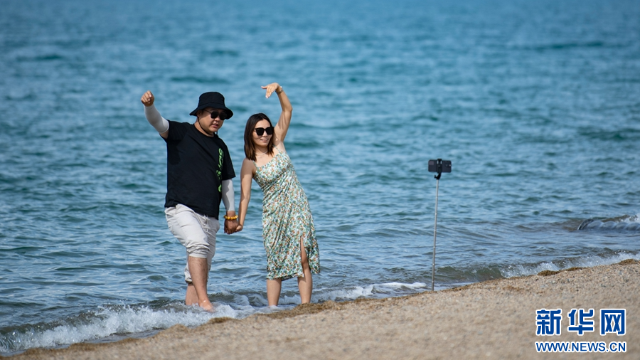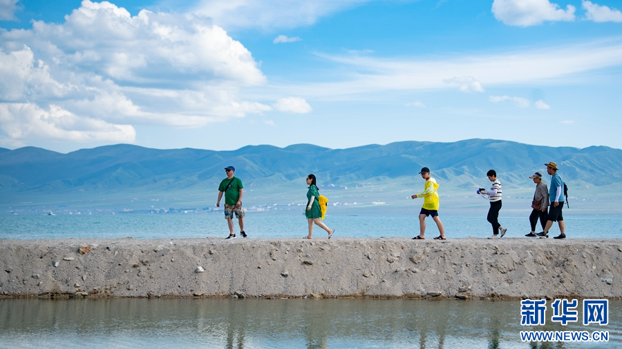 8月2日,游客在青海湖二郎劍景區(qū)游玩。新華網(wǎng) 潘彬彬 攝