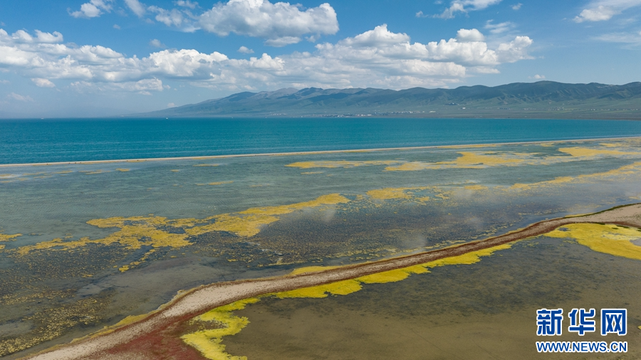 這是8月2日拍攝的青海湖二郎劍景區(qū)一角。(無(wú)人機(jī)照片)新華網(wǎng) 郭勇良 攝