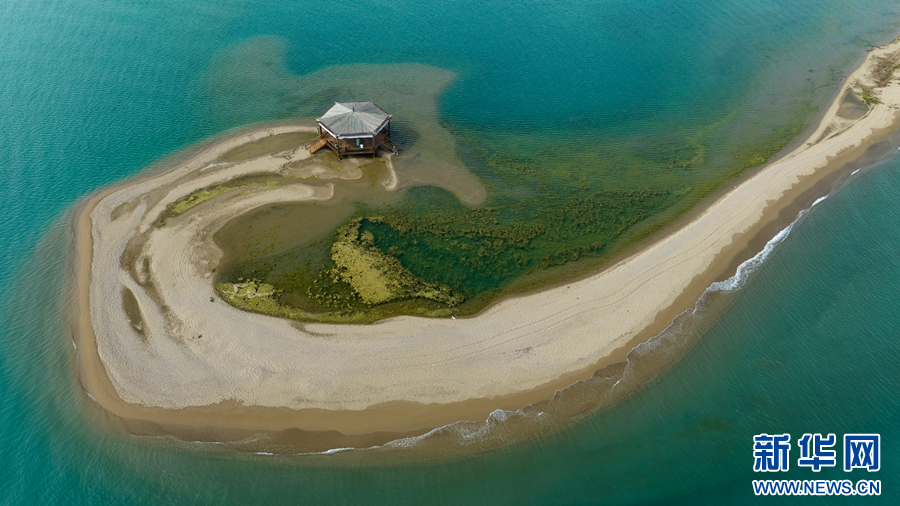 這是8月2日拍攝的青海湖二郎劍景區(qū)二郎劍半島一角。(無(wú)人機(jī)照片)新華網(wǎng) 郭勇良 攝