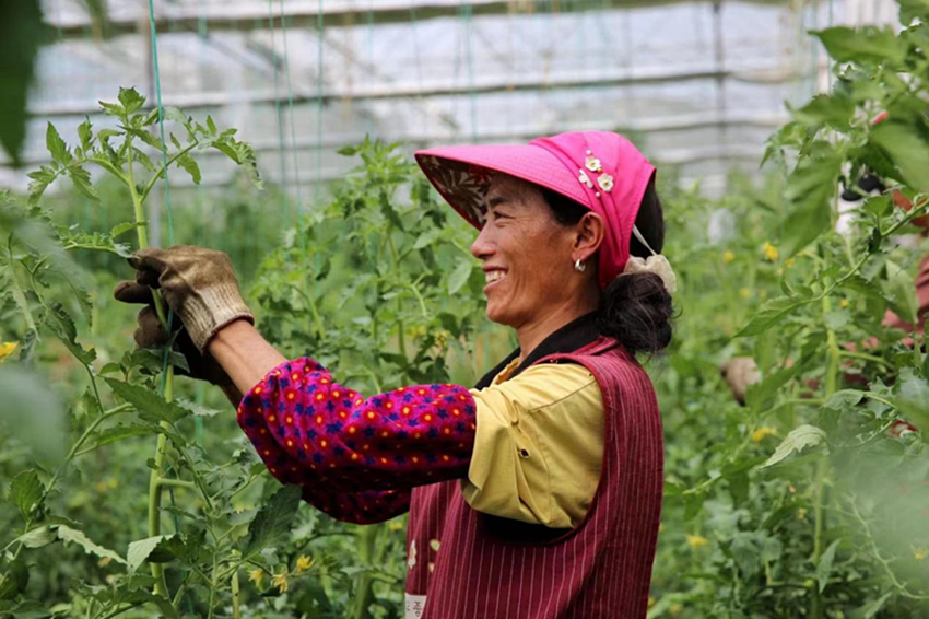 集水肥一體、物聯(lián)傳感、數(shù)字植保、立體循環(huán)、智慧數(shù)字化大棚……走進丹巴縣半扇門鎮(zhèn)喇嘛寺村的農(nóng)業(yè)園區(qū),番茄、黃瓜、無筋豆、辣椒、蒜苗等長勢喜人。智慧大棚里12畝左右的黃瓜、40畝的溫室大棚高山番茄已陸續(xù)上市。預計今年能產(chǎn)出黃瓜25萬斤,產(chǎn)值約100萬元;番茄40萬斤,產(chǎn)值約200萬元;露天種植辣椒12畝,產(chǎn)值10萬元。